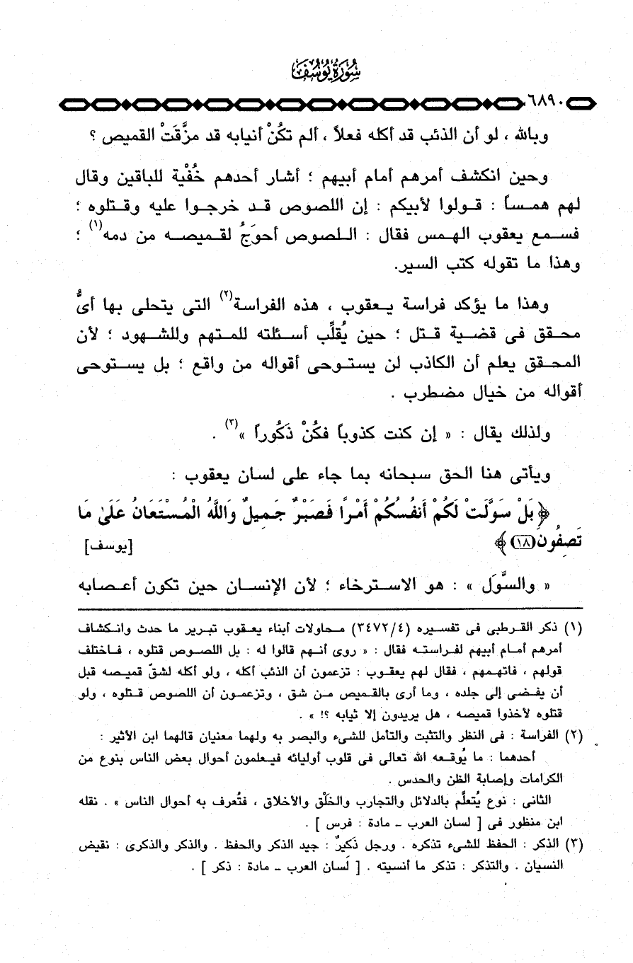 وهذا ما يؤكد فراسة يعقوب، هذه الفراسة التي يتحلى بها أيُّ محقق في قضية قتل؛ حين يُقلِّب أسئلته للمتهم وللشهود؛ لأن المحقق يعلم أن الكاذب لن يستوحي أقواله من واقع؛ بل يستوحي أقواله من خيال مضطرب.