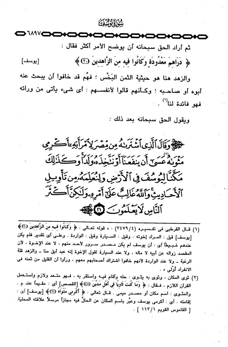 {دَرَاهِمَ مَعْدُودَةٍ وَكَانُواْ فِيهِ مِنَ الزاهدين} [يوسف: 20] ، والزهد هنا هو حيثية الثمن البَخْس؛ فهُم قد خافوا أن يبحث عنه أبوه أو صاحبه؛ وكأنهم قالوا لأنفسهم: أي شيء يأتي من ورائه فهو فائدة لنا.