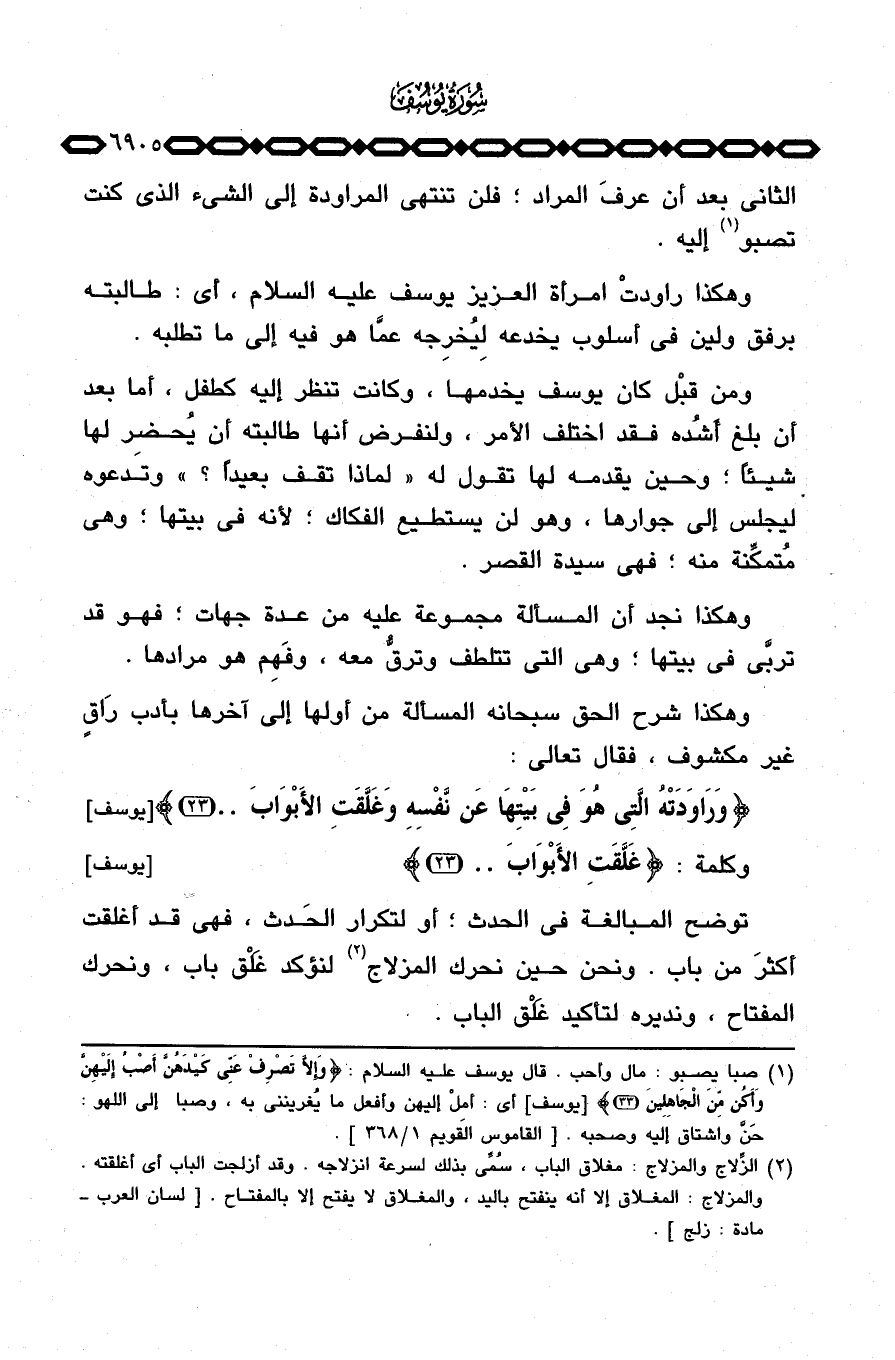 {وَرَاوَدَتْهُ التي هُوَ فِي بَيْتِهَا عَن نَّفْسِهِ وَغَلَّقَتِ الأبواب ... } [يوسف: 23] .