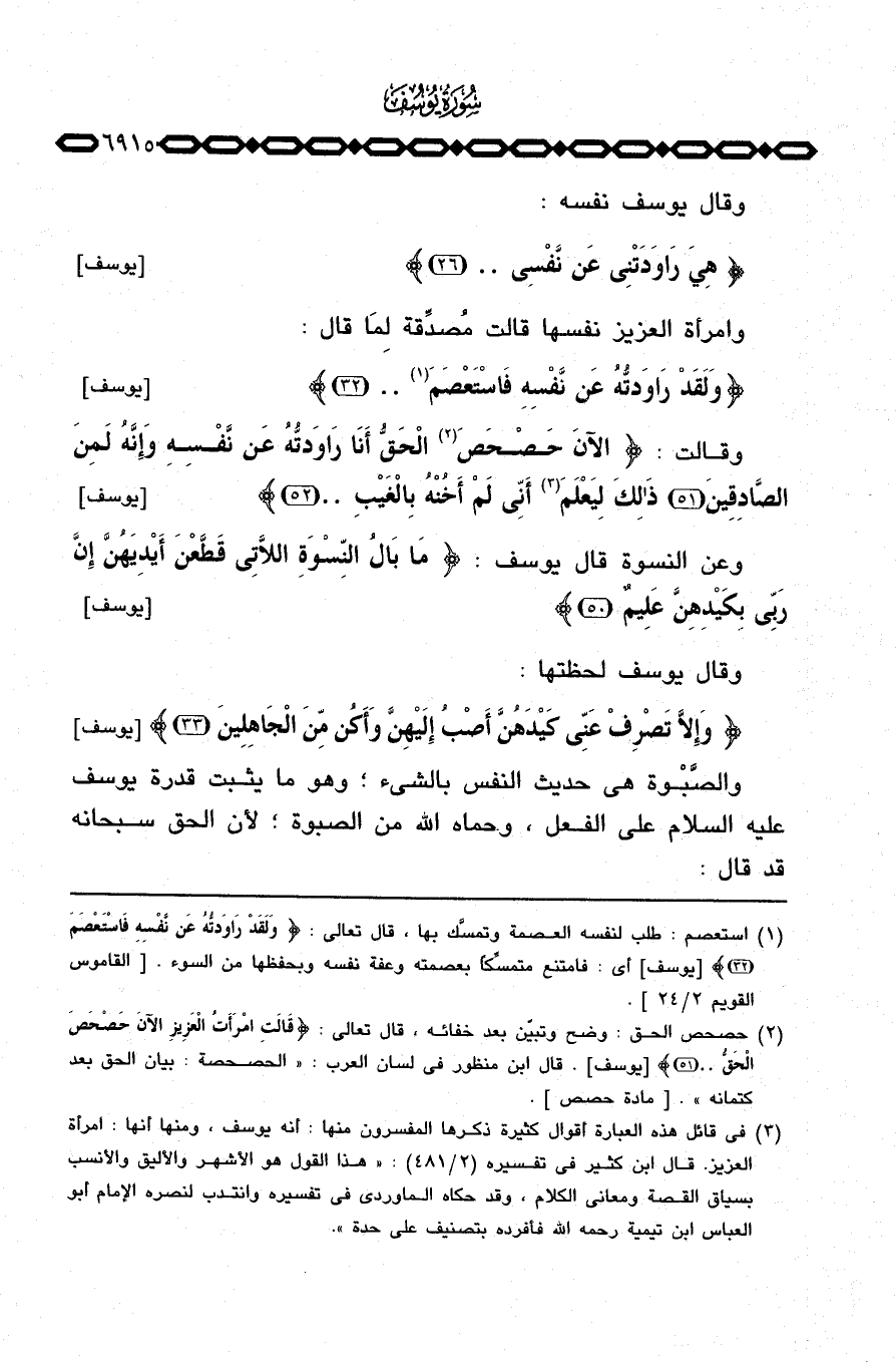 وقال يوسف نفسه: {هِيَ رَاوَدَتْنِي عَن نَّفْسِي} [يوسف: 26] وامرأة العزيز نفسها قالت مُصدِّقة لِمَا قال: {وَلَقَدْ رَاوَدتُّهُ عَن نَّفْسِهِ فاستعصم} [يوسف: 32] .