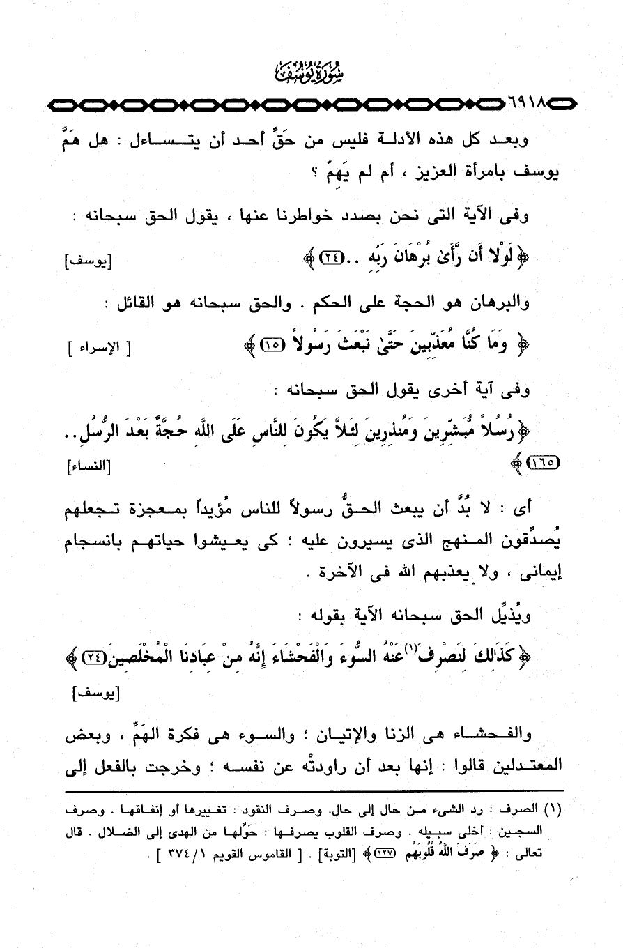 {كَذَلِكَ لِنَصْرِفَ عَنْهُ السواء والفحشآء إِنَّهُ مِنْ عِبَادِنَا المخلصين} [يوسف: 24] .