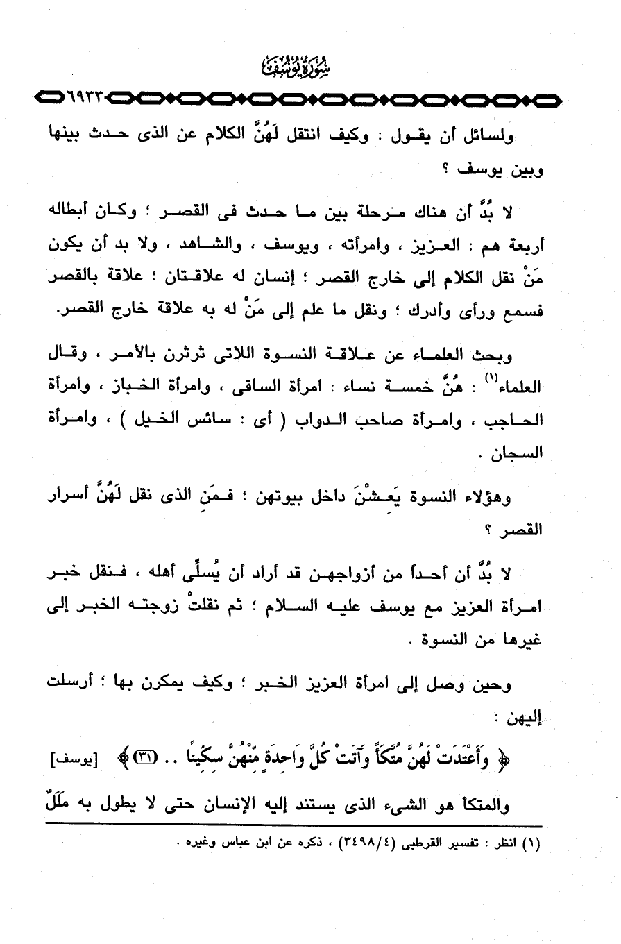 {وَأَعْتَدَتْ لَهُنَّ مُتَّكَئاً وَآتَتْ كُلَّ وَاحِدَةٍ مِّنْهُنَّ سِكِّيناً. .} [يوسف: 31] .