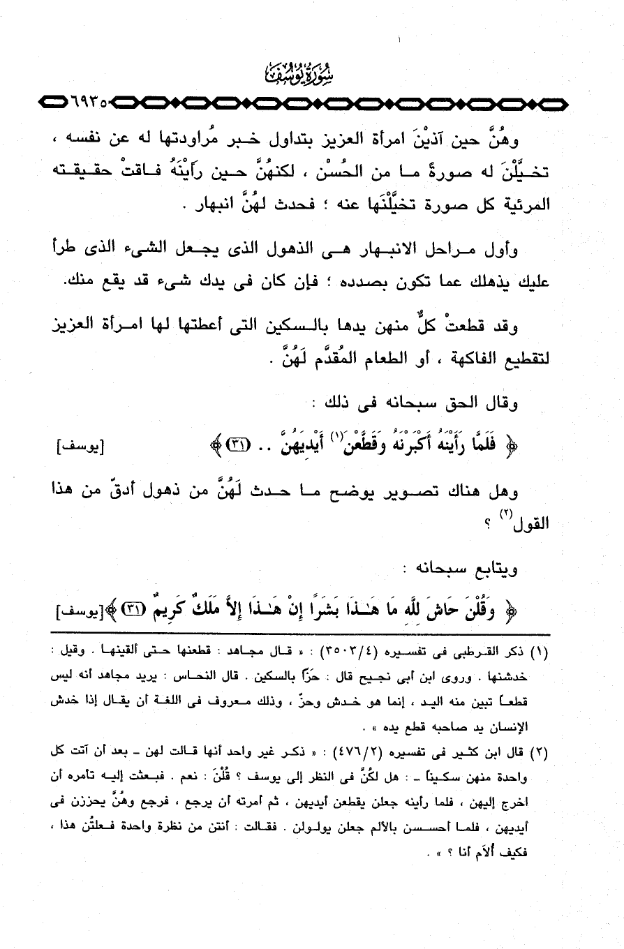 {فَلَمَّا رَأَيْنَهُ أَكْبَرْنَهُ وَقَطَّعْنَ أَيْدِيَهُنَّ} [يوسف: 31] .