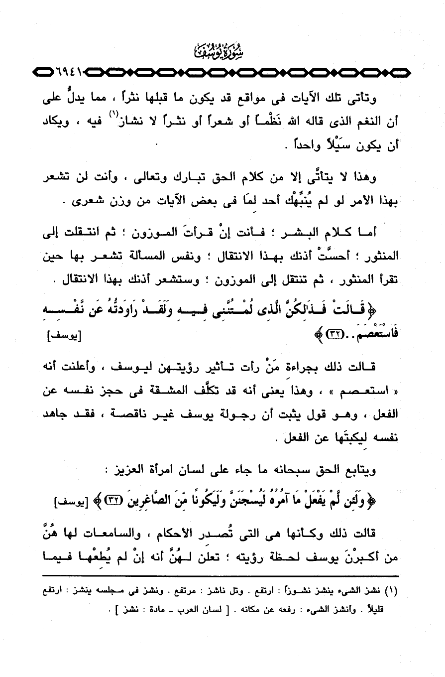 وتأتي تلك الآيات في مواقع قد يكون ما قبلها نثراً، مما يدلُّ على أن النغم الذي قاله الله نَظْماً أو شعراً أو نثراً لا نشاز فيه، ويكاد أن يكون سَيْلاً واحداً.