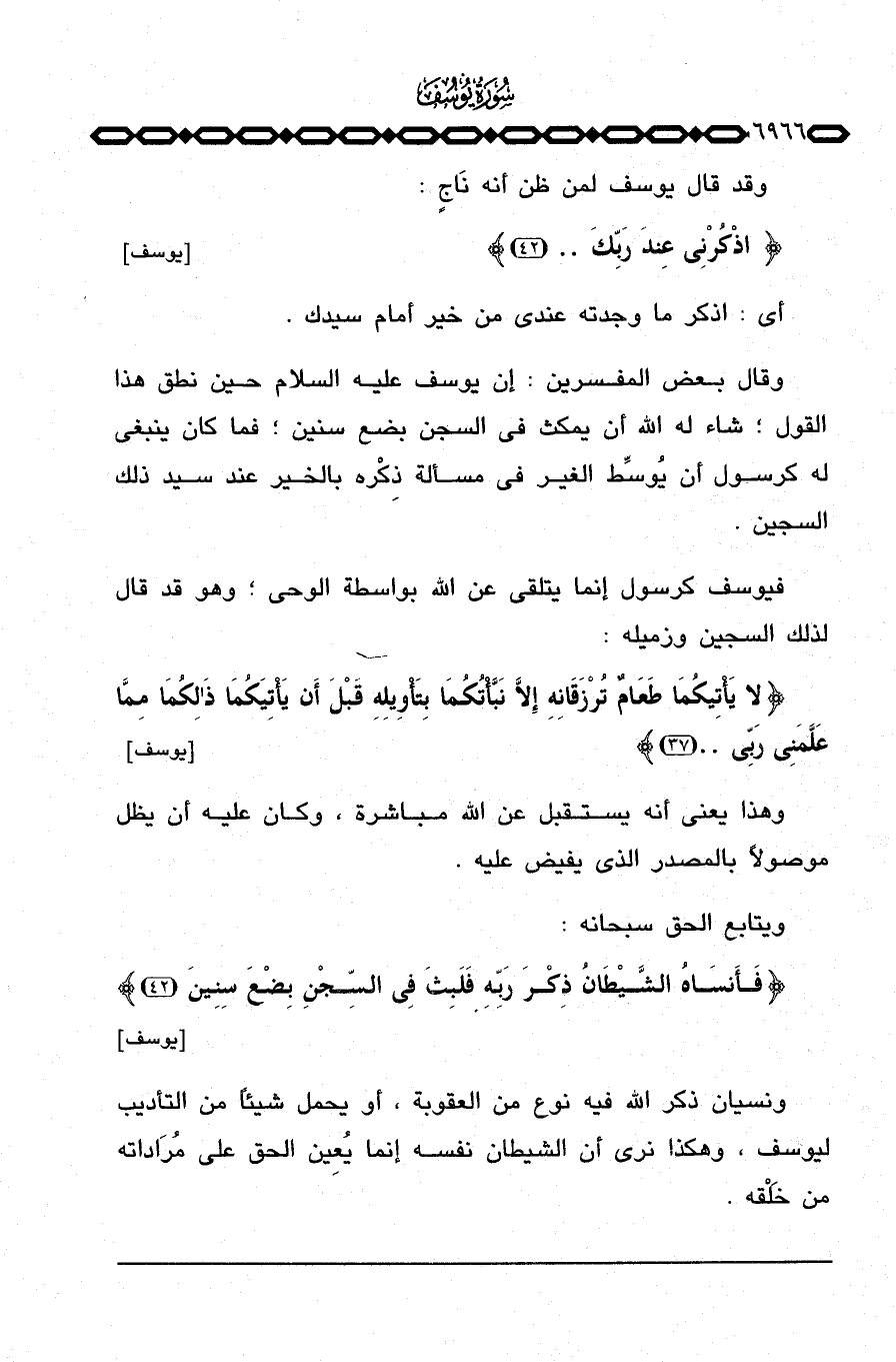 ونسيان ذكر الله فيه نوع من العقوبة، أو يحمل شيئاً من التأديب ليوسف، وهكذا نرى أن الشيطان نفسه إنما يُعِين الحق على مُرَاداته من خَلْقه.