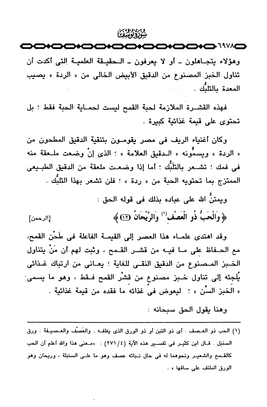 ويمتنُّ الله على عباده بذلك في قوله الحق: {والحب ذُو العصف والريحان} [الرحمن: 12] .