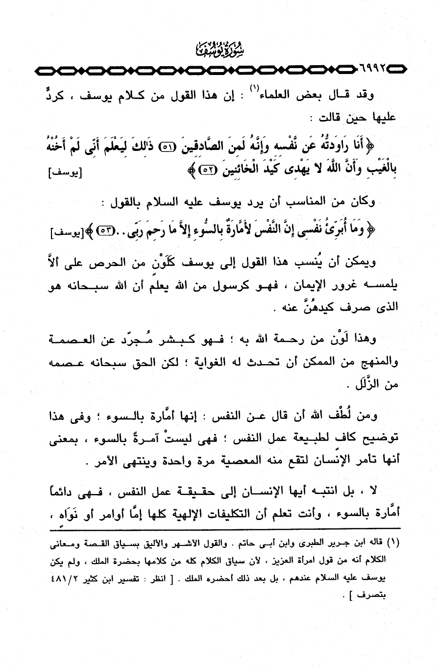 {وَمَآ أُبَرِّىءُ نفسي إِنَّ النفس لأَمَّارَةٌ بالسواء إِلاَّ مَا رَحِمَ ربي} [يوسف: 53] .