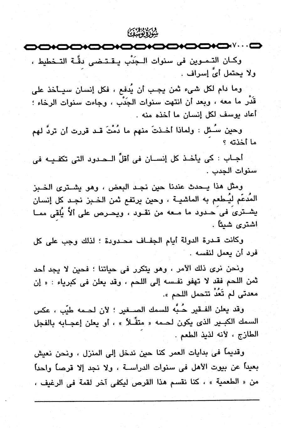 أجاب: كي يأخذ كل إنسان في أقلَّ الحدود التي تكفيه في سنوات الجدب.