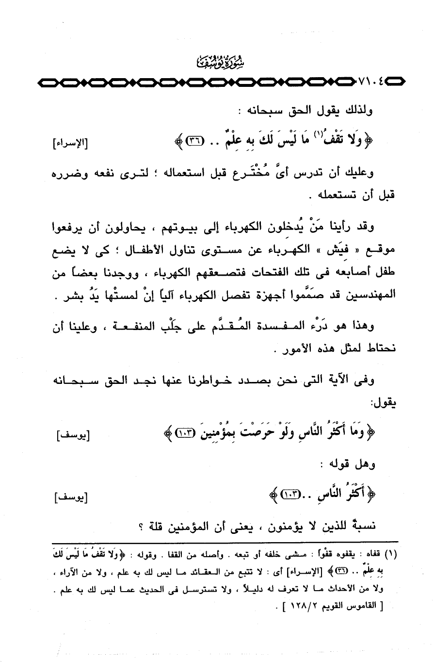 ولذلك يقول الحق سبحانه: {وَلاَ تَقْفُ مَا لَيْسَ لَكَ بِهِ عِلْمٌ ... } [الإسراء: 36]