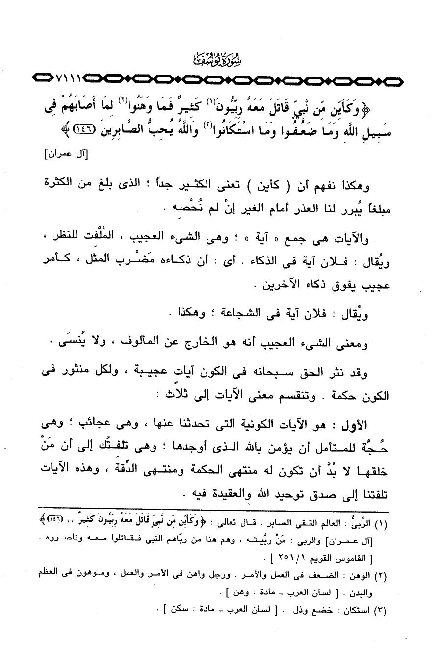 {وَكَأَيِّن مِّن نَّبِيٍّ قَاتَلَ مَعَهُ رِبِّيُّونَ كَثِيرٌ فَمَا وَهَنُواْ لِمَآ أَصَابَهُمْ فِي سَبِيلِ الله وَمَا ضَعُفُواْ وَمَا استكانوا والله يُحِبُّ الصابرين} [آل عمران: 146]