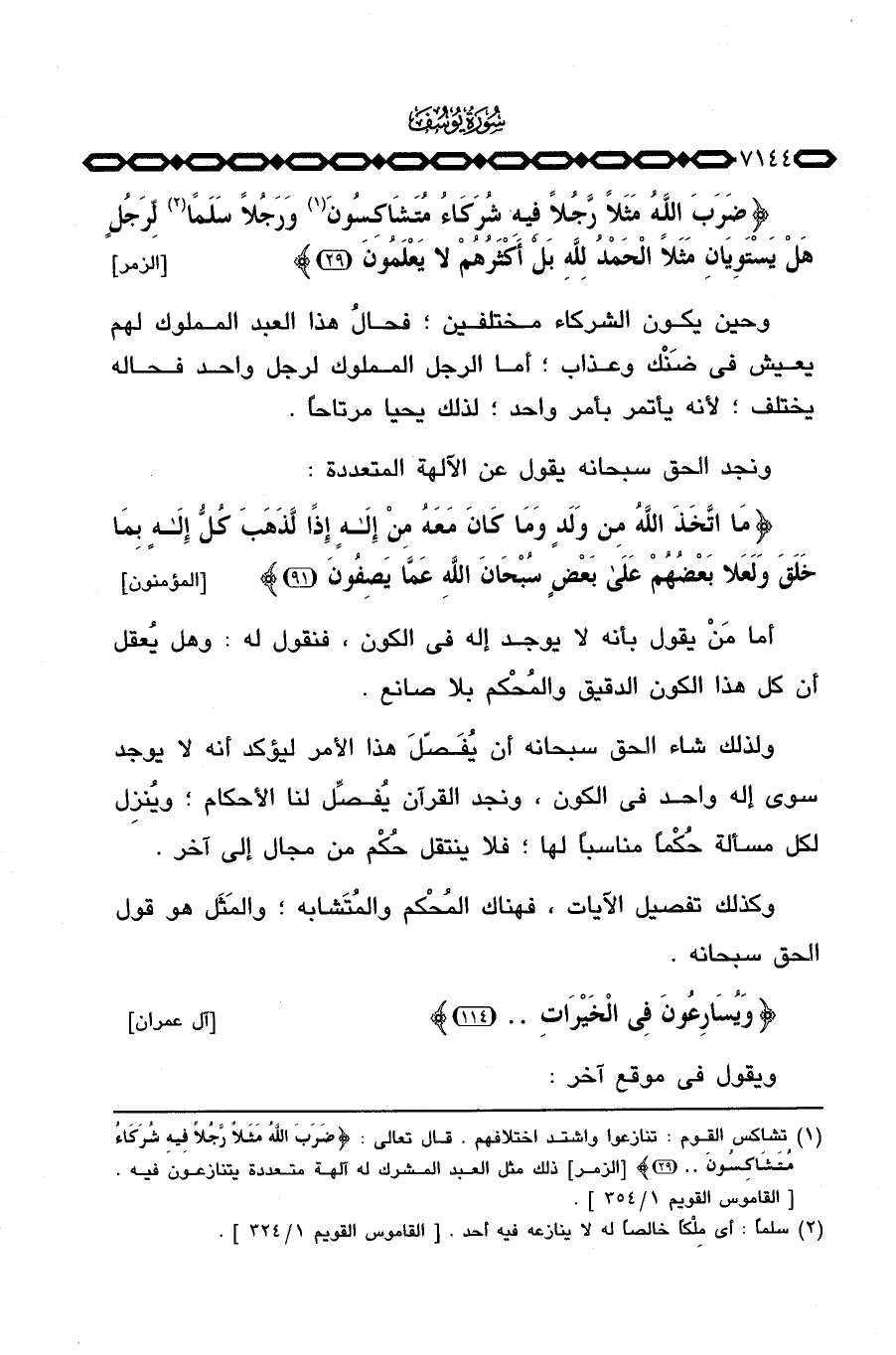 {ضَرَبَ الله مَثَلاً رَّجُلاً فِيهِ شُرَكَآءُ مُتَشَاكِسُونَ وَرَجُلاً سَلَماً لِّرَجُلٍ هَلْ يَسْتَوِيَانِ مَثَلاً الحمد للَّهِ بَلْ أَكْثَرُهُمْ لاَ يَعْلَمُونَ} [الزمر: 29]