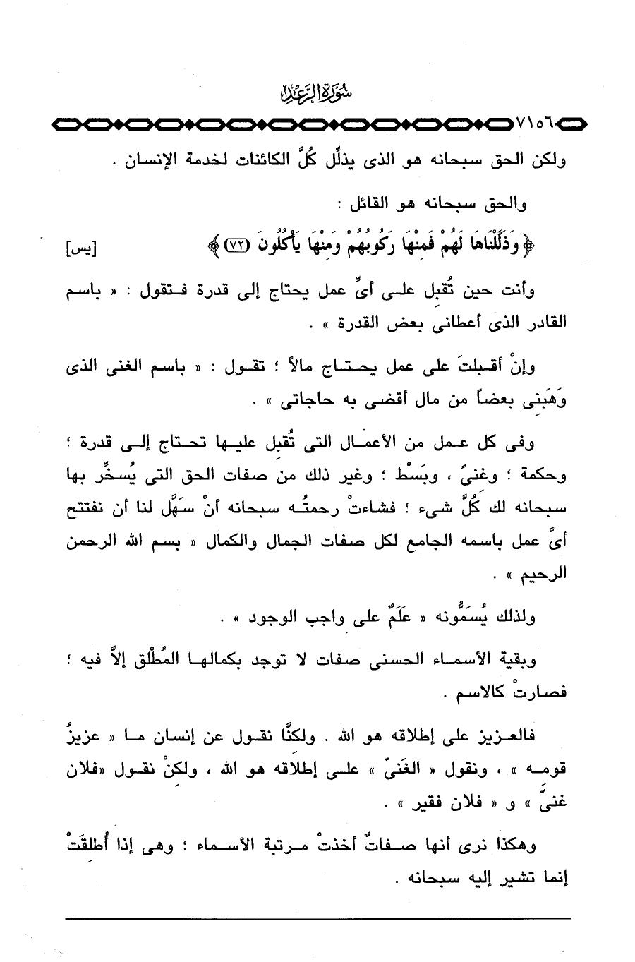 وأنت حين تُقبِل على أيِّ عمل يحتاج إلى قدرة فتقول: «باسم القادر الذي أعطاني بعض القدرة» .