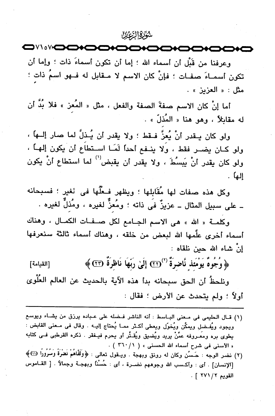 أما إنْ كان الاسم صفةَ الصفة والفعل، مثل «المُعِز» فلابُدَّ أن له مقابلاً، وهو هنا «المُذِلّ» .