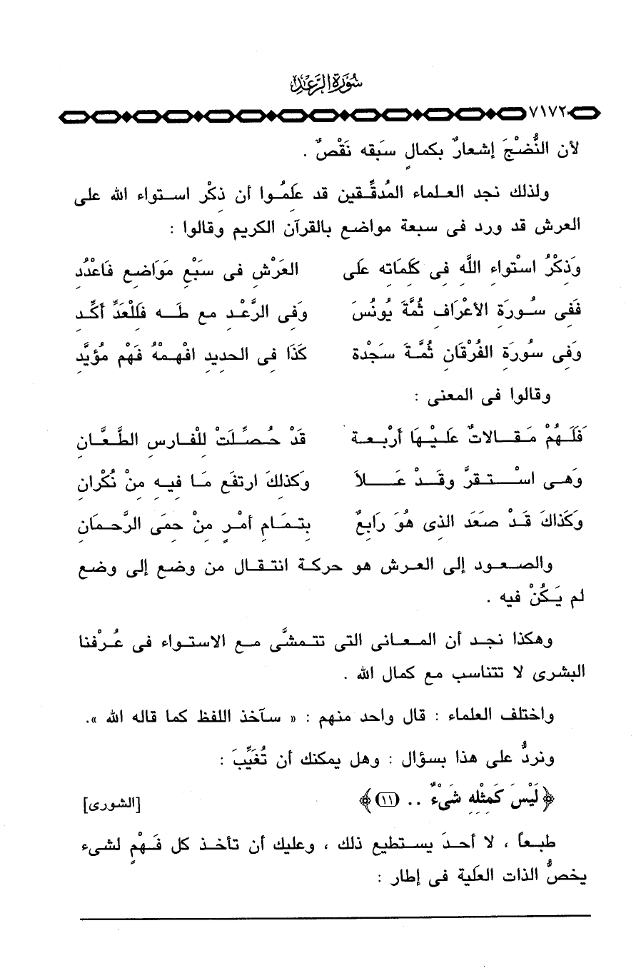 وهكذا نجد أن المعاني التي تتمشَّى مع الاستواء في عُرْفنا البشري لا تتناسب مع كمال الله.
