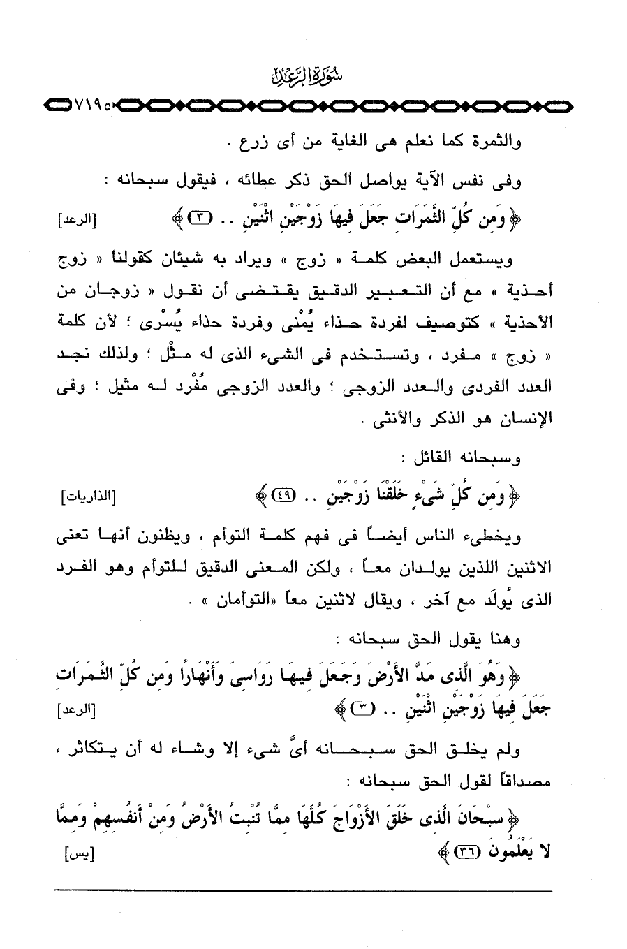 وسبحانه القائل: {وَمِن كُلِّ شَيْءٍ خَلَقْنَا زَوْجَيْنِ} [الذاريات: 49]