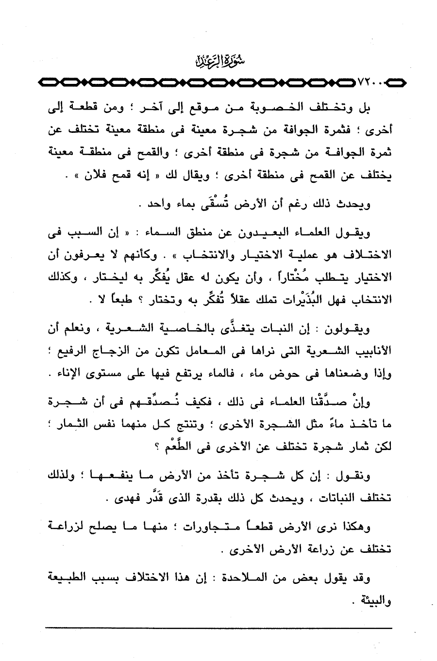 وإنْ صدَّقْنا العلماء في ذلك، فُكيف نصدِّقهم في أن شجرة ما تأخذ ماءً من الشجرة الأخرى؛ وتنتج كل منهما نفس الثمار؛ لكن ثمار شجرة تختلف عن الأخرى في الطَّعْم؟