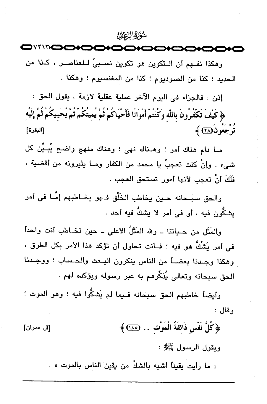 ويقول الرسول صَلَّى اللَّهُ عَلَيْهِ وَسَلَّم َ: «ما رأيت يقيناً أشبه بالشك من يقين الناس بالموت» .