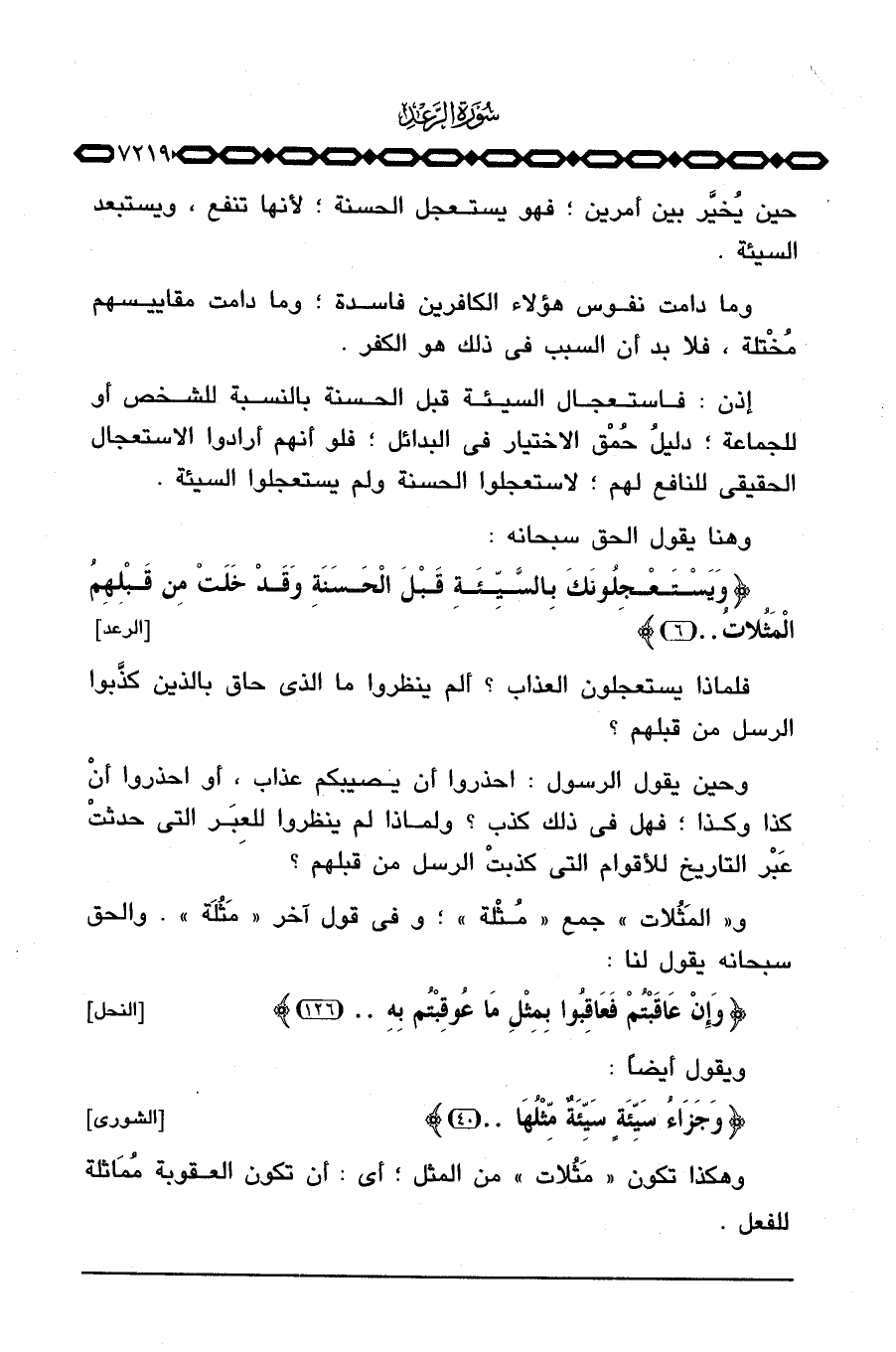 إذن: فاستعجال السيئة قبل الحسنة بالنسبة للشخص أو للجماعة؛ دليلُ حُمْق الاختيار في البدائل؛ فلو أنهم أرادوا الاستعجال الحقيقي للنافع لهم؛ لاستعجلوا الحسنة ولم يستعجلوا السيئة.