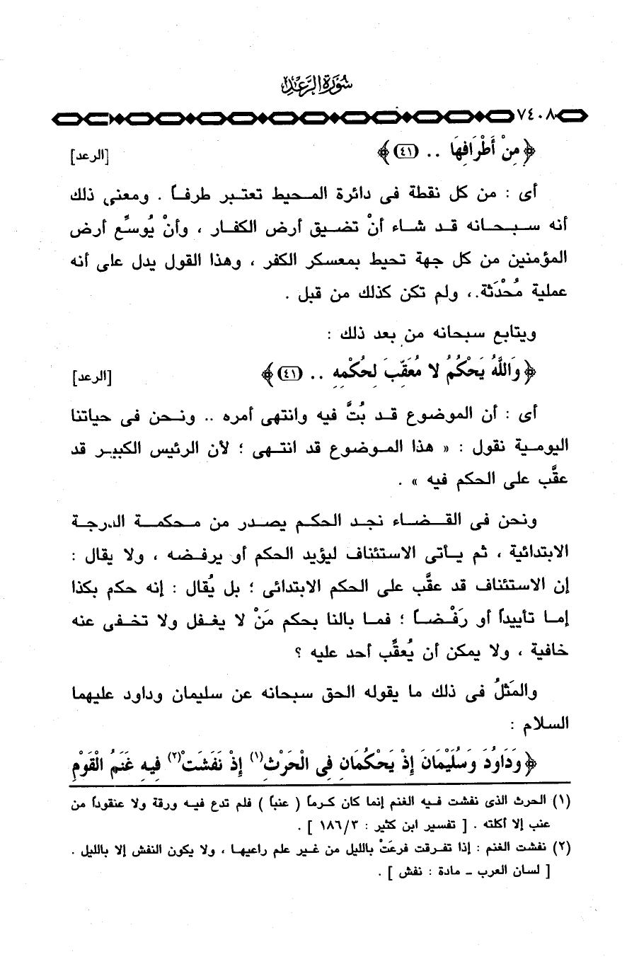 ونحن في القضاء نجد الحكم يصدر من محكمة الدرجة الابتدائية، ثم يأتي الاستئناف ليؤيد الحكم أو يرفضه، ولا يقال: إن الاستئناف قد عقَّب على الحكم الابتدائي؛ بل يُقال: إنه حكم بكذا إما تأييداً أو رَفْضاً؛ فما بالنا بحكم مَنْ لا يغفل ولا تخفى عنه خافية، ولا يمكن أن يُعقِّب أحد عليه؟