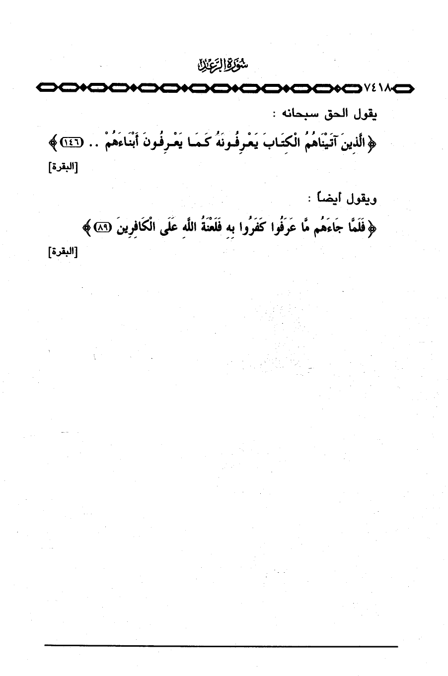 ويقول أيضاً: { ... فَلَمَّا جَآءَهُمْ مَّا عَرَفُواْ كَفَرُواْ بِهِ فَلَعْنَةُ الله عَلَى الكافرين} [البقرة: 89]