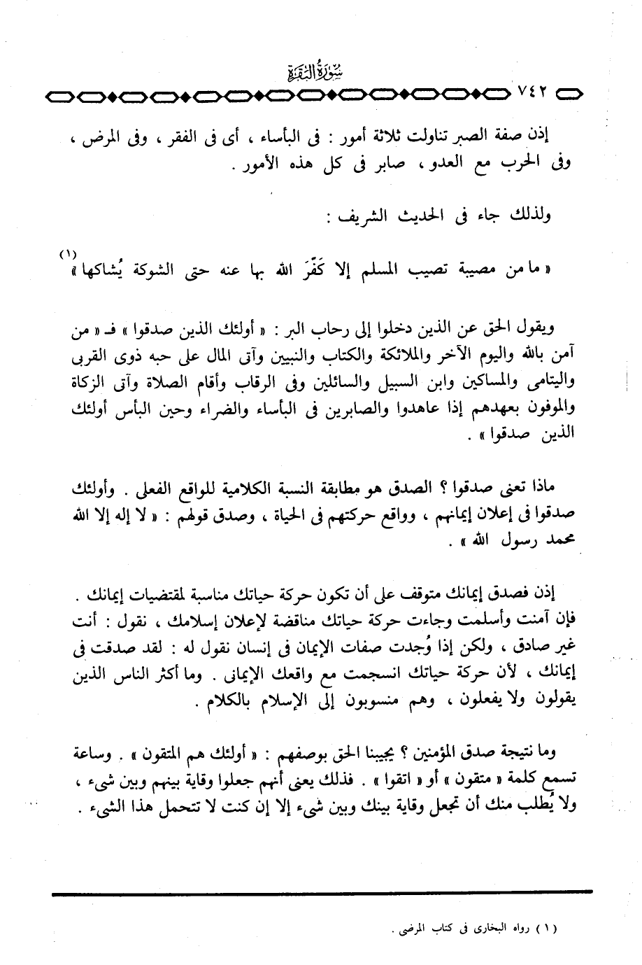 ماذا تعني صدقوا؟ الصدق هو مطابقة النسبة الكلامية للواقع الفعلي. وأولئك صدقوا في إعلان إيمانهم، وواقع حركتهم في الحياة، وصدق قولهم: «لا إله إلا الله محمد رسول الله» .