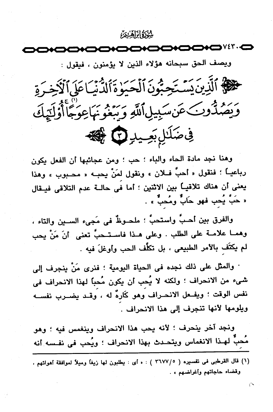 والفرق بين أحبَّ واستحبَّ؛ ملحوظٌ في مَجيء السين والتاء، وهما علامة على الطلب. على هذا فاستحبَّ تعني أنَ مَنْ يحب لم يكتَفِ بالأمر الطبيعي، بل تكلَّف الحب وأوغلَ فيه.