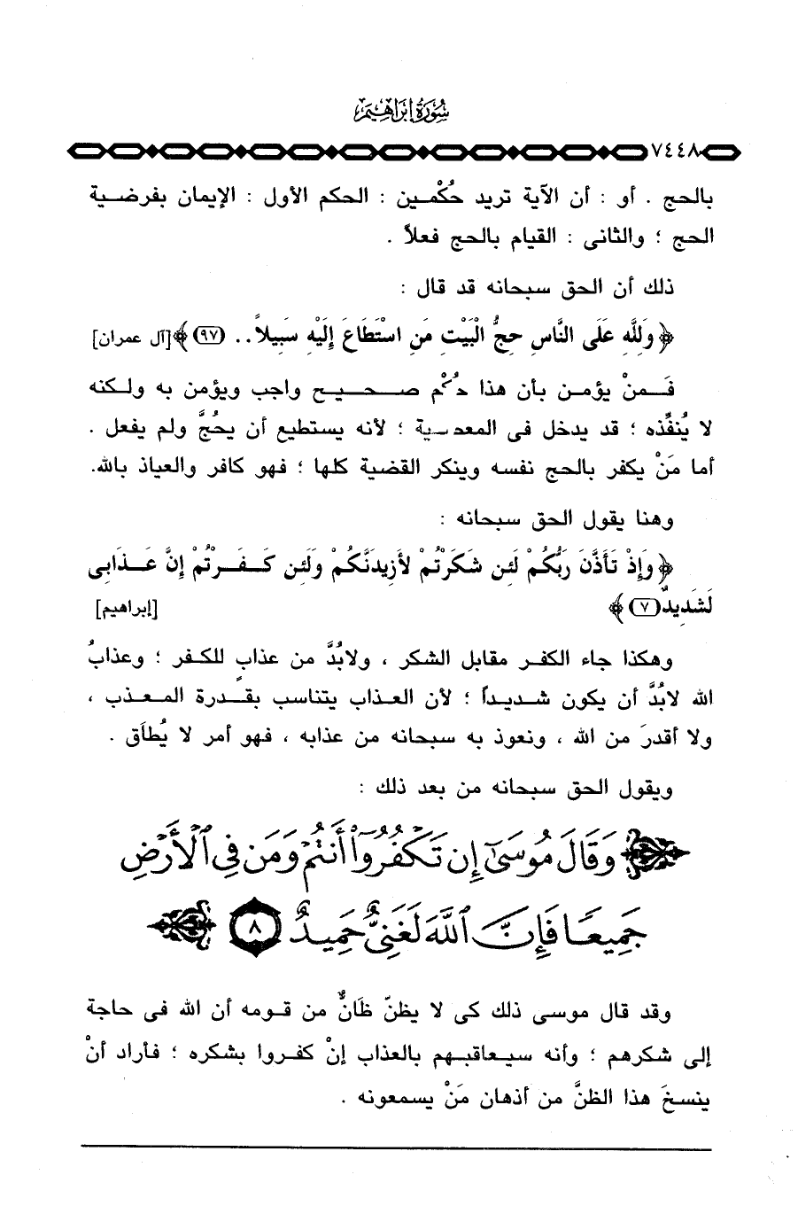 وقد قال موسى ذلك كي لا يظنّ ظَانٌّ من قومه أن الله في حاجة إلى شكرهم؛ وأنه سيعاقبهم بالعذاب إنْ كفروا بشكره؛ فأراد أنْ ينسخَ هذا الظنَّ من أذهان مَنْ يسمعونه.