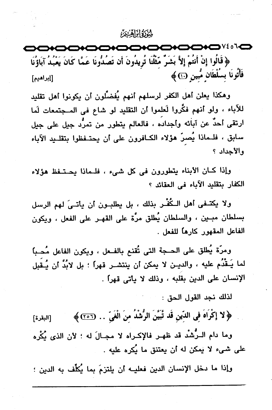 وإذا كان الأبناء يتطورون في كل شيء، فلماذا يحتفظ هؤلاء الكفار بتقليد الآباء في العقائد؟