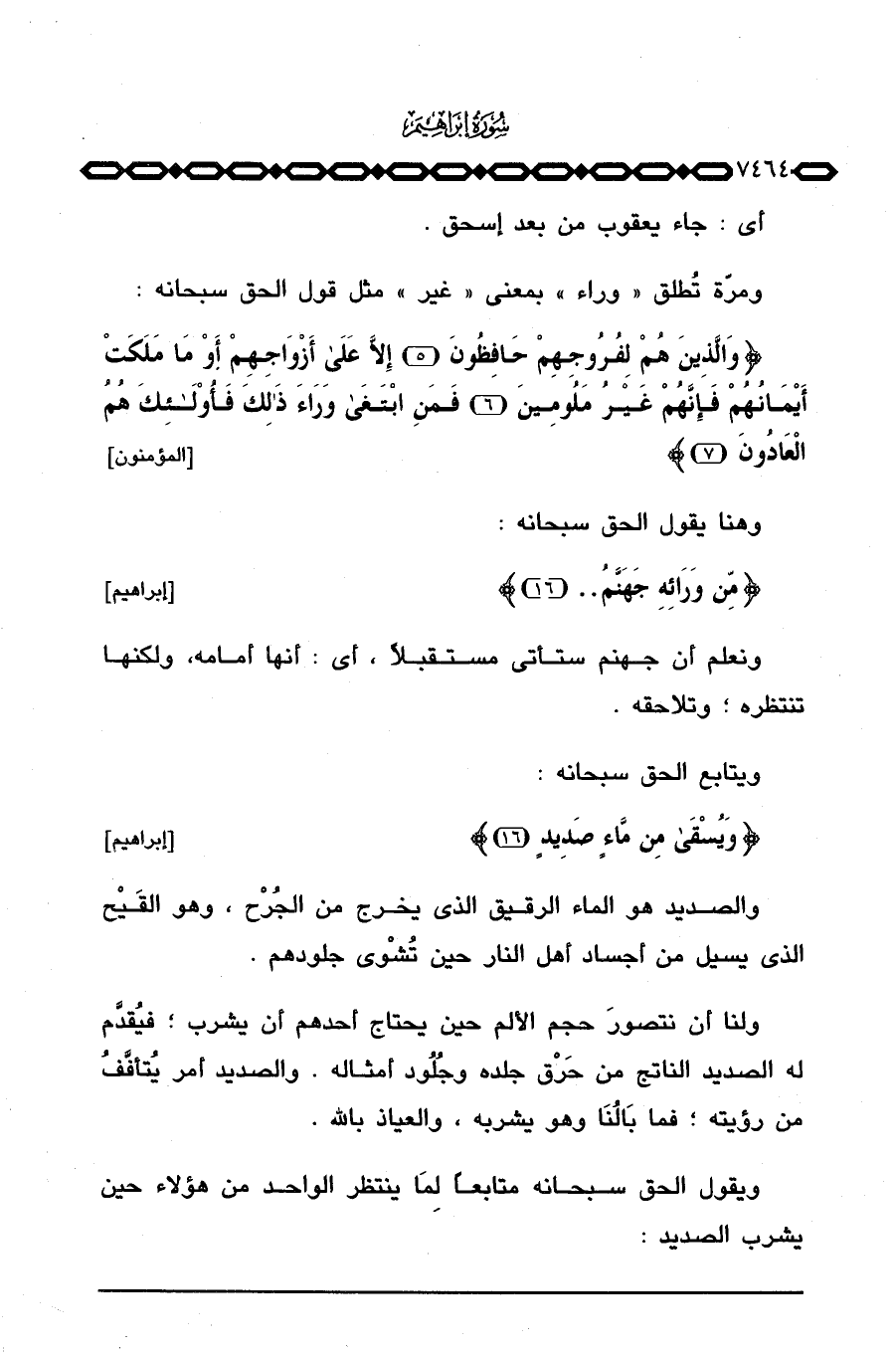 ومرّة تُطلق «وراء» بمعنى «غير» مثل قول الحق سبحانه: {والذين هُمْ لِفُرُوجِهِمْ حَافِظُونَ إِلاَّ على أَزْوَاجِهِمْ أَوْ مَا مَلَكَتْ أَيْمَانُهُمْ فَإِنَّهُمْ غَيْرُ مَلُومِينَ فَمَنِ ابتغى وَرَآءَ ذلك فأولئك هُمُ العادون} [المؤمنون: 5 - 7] .