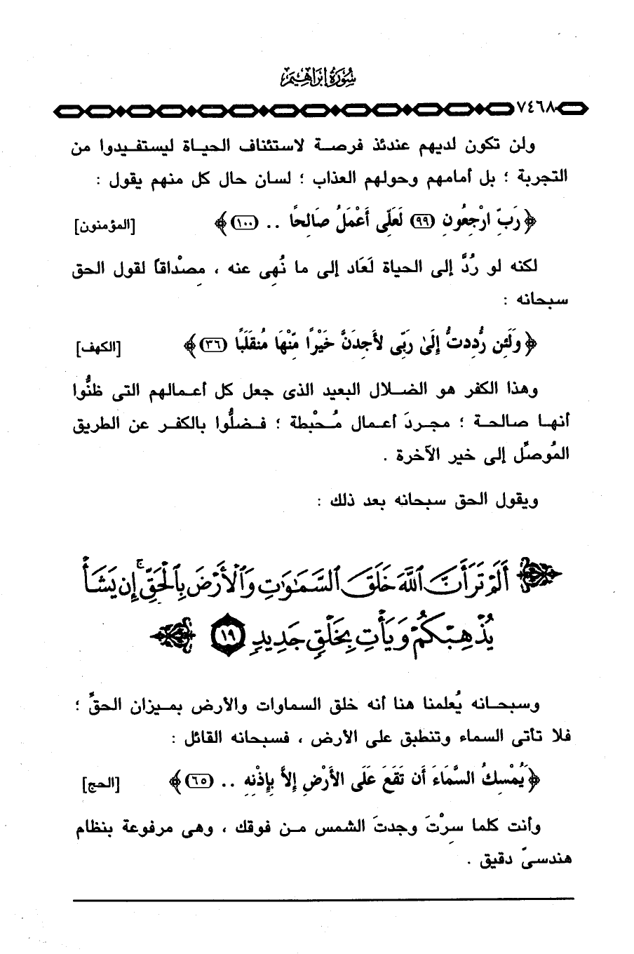 وسبحانه يُعلمنا هنا أنه خلق السماوات والأرض بميزان الحقِّ؛ فلا تأتي السماء وتنطبق على الأرض، فسبحانه القائل: {وَيُمْسِكُ السمآء أَن تَقَعَ عَلَى الأرض إِلاَّ بِإِذْنِهِ ... } [الحج: 65] .