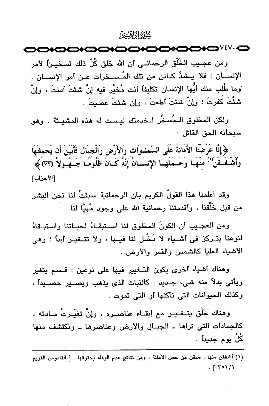 ولكن المخلوق المُسخَّر لخدمتك ليست له هذه المشيئة. وهو سبحانه الحق القائل: {إِنَّا عَرَضْنَا الأمانة عَلَى السماوات والأرض والجبال فَأبَيْنَ أَن يَحْمِلْنَهَا وَأَشْفَقْنَ مِنْهَا وَحَمَلَهَا الإنسان إِنَّهُ كَانَ ظَلُوماً جَهُولاً} [الأحزاب: 72] .