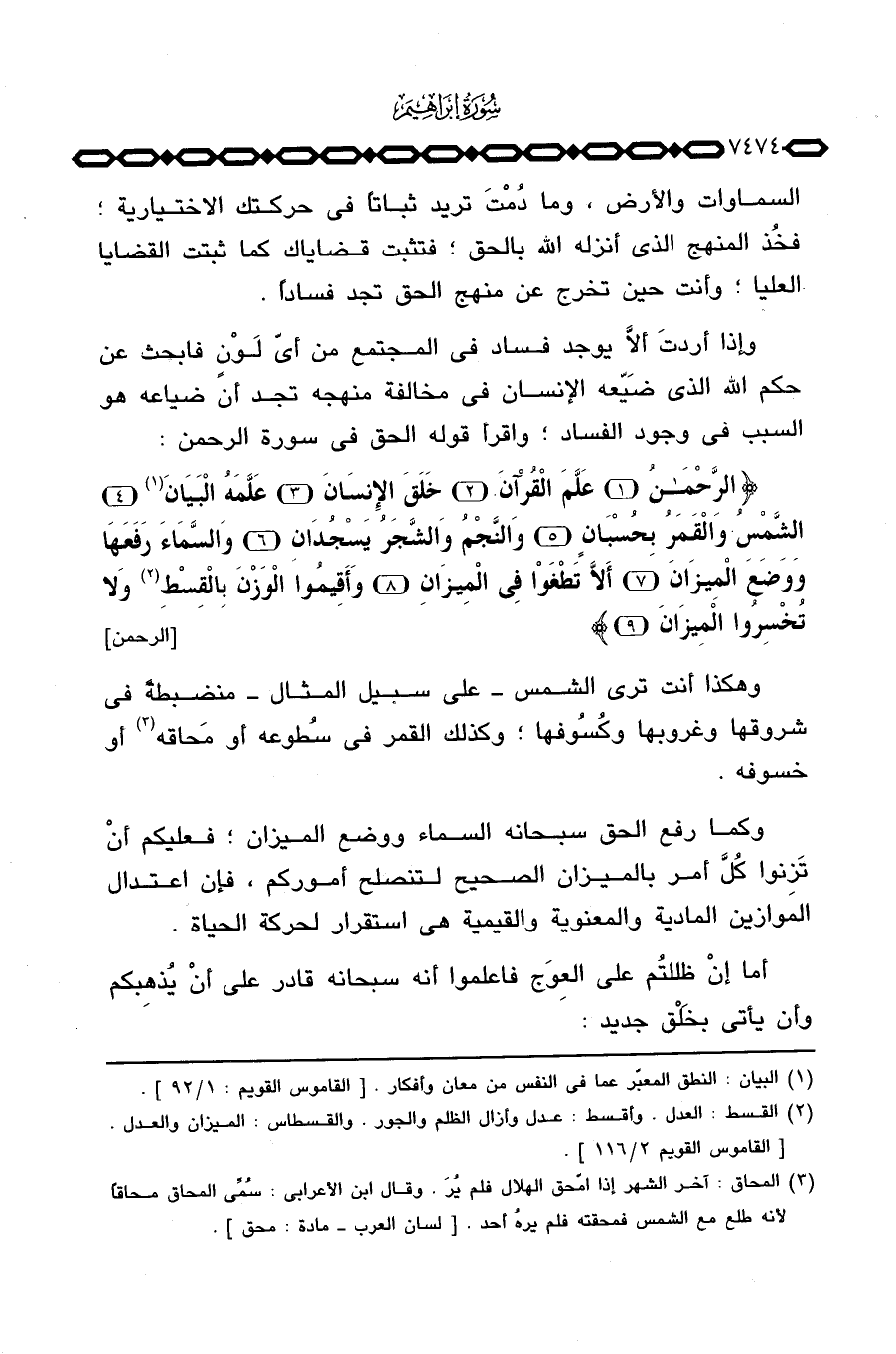 وهكذا أنت ترى الشمس - على سبيل المثال - منضبطة في شروقها وغروبها وكُسُوفها؛ وكذلك القمر في سُطوعه أو مَحاقه أو خسوفه.