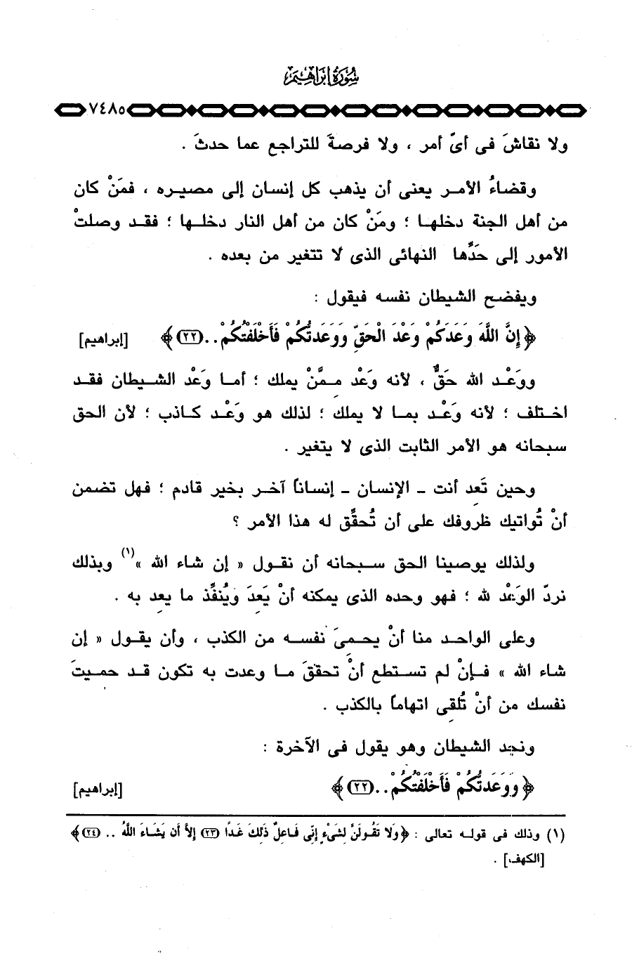 {إِنَّ الله وَعَدَكُمْ وَعْدَ الحق وَوَعَدتُّكُمْ فَأَخْلَفْتُكُمْ} [إبراهيم: 22] .