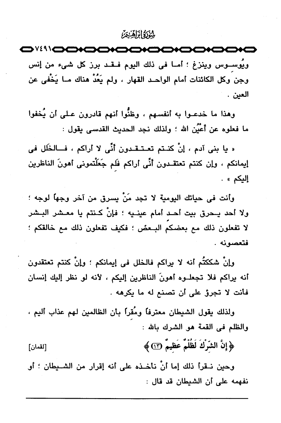 وأنت في حياتك اليومية لا تجد مَنْ يسرق من آخر وجهاً لوجه: ولا أحد يحرق بيت أحدٍ أمام عينيه؛ فإنْ كنتم يا معشر البشر لا تفعلون ذلك مع بعضكم البعض؛ فكيف تفعلون ذلك مع خالقكم؛ فتعصونه.