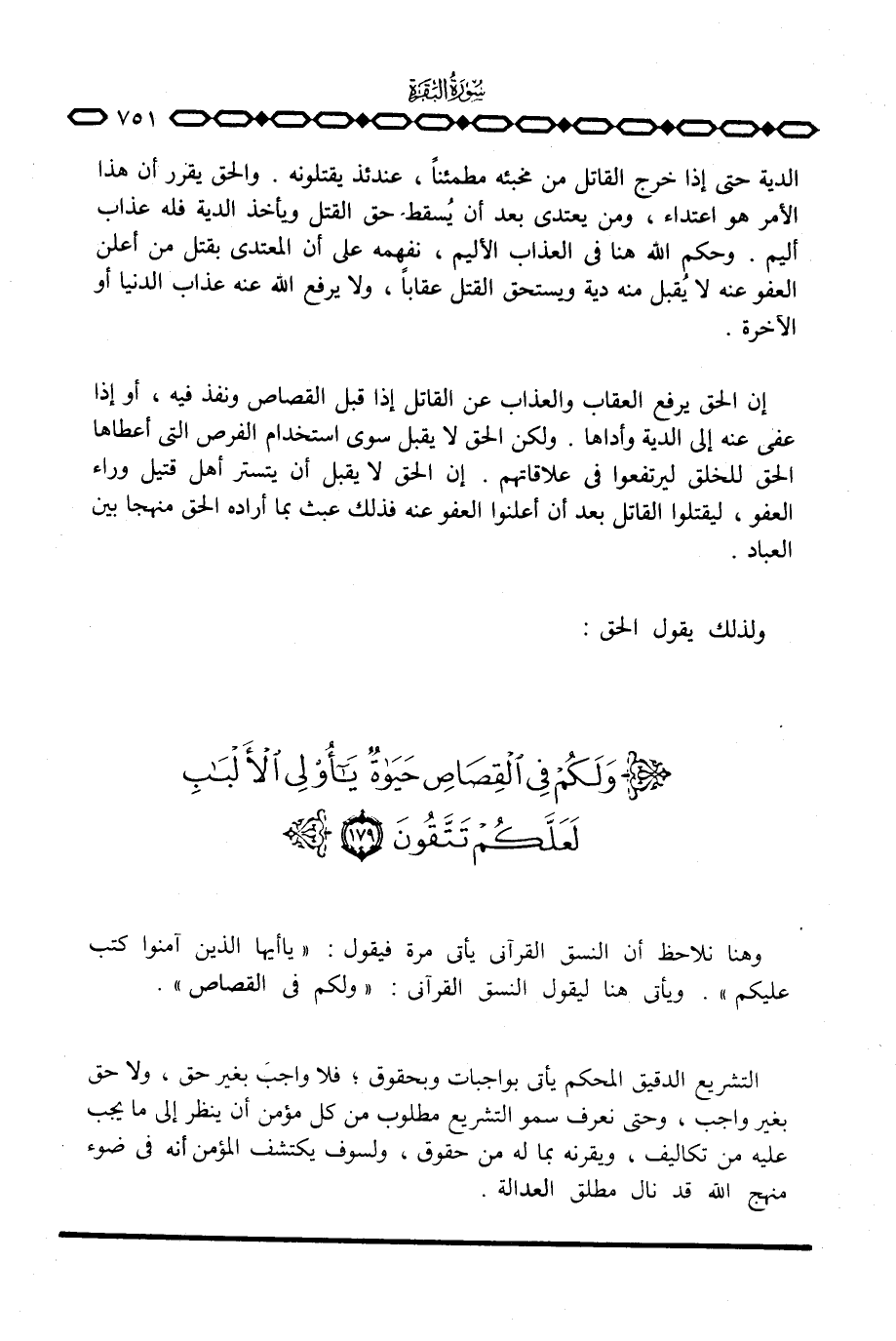 إن الحق يرفع العقاب والعذاب عن القاتل إذا قبل القصاص ونفذ فيه، أو إذا عفي عنه إلى الدية وأداها. ولكن الحق لا يقبل سوى استخدام الفرص التي أعطاها الحق للخلق ليرتفعوا في علاقاتهم. إن الحق لا يقبل أن يتستر أهل قتيل وراء العفو، ليقتلوا القاتل بعد أن أعلنوا العفو عنه فذلك عبث بما أراده الحق منهجاً بين العباد.