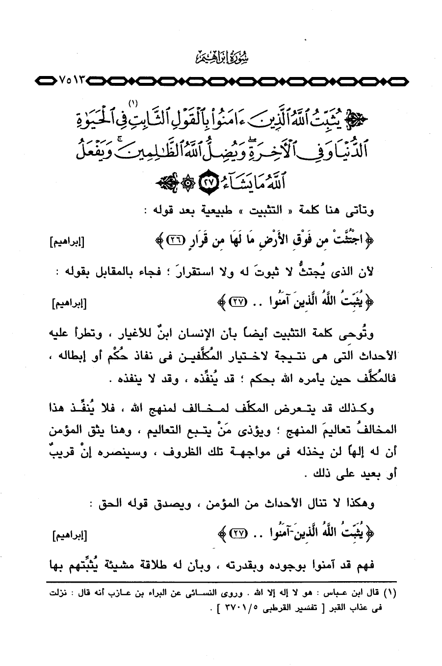 {يُثَبِّتُ الله الذين آمَنُواْ ... } [إبراهيم: 27] .