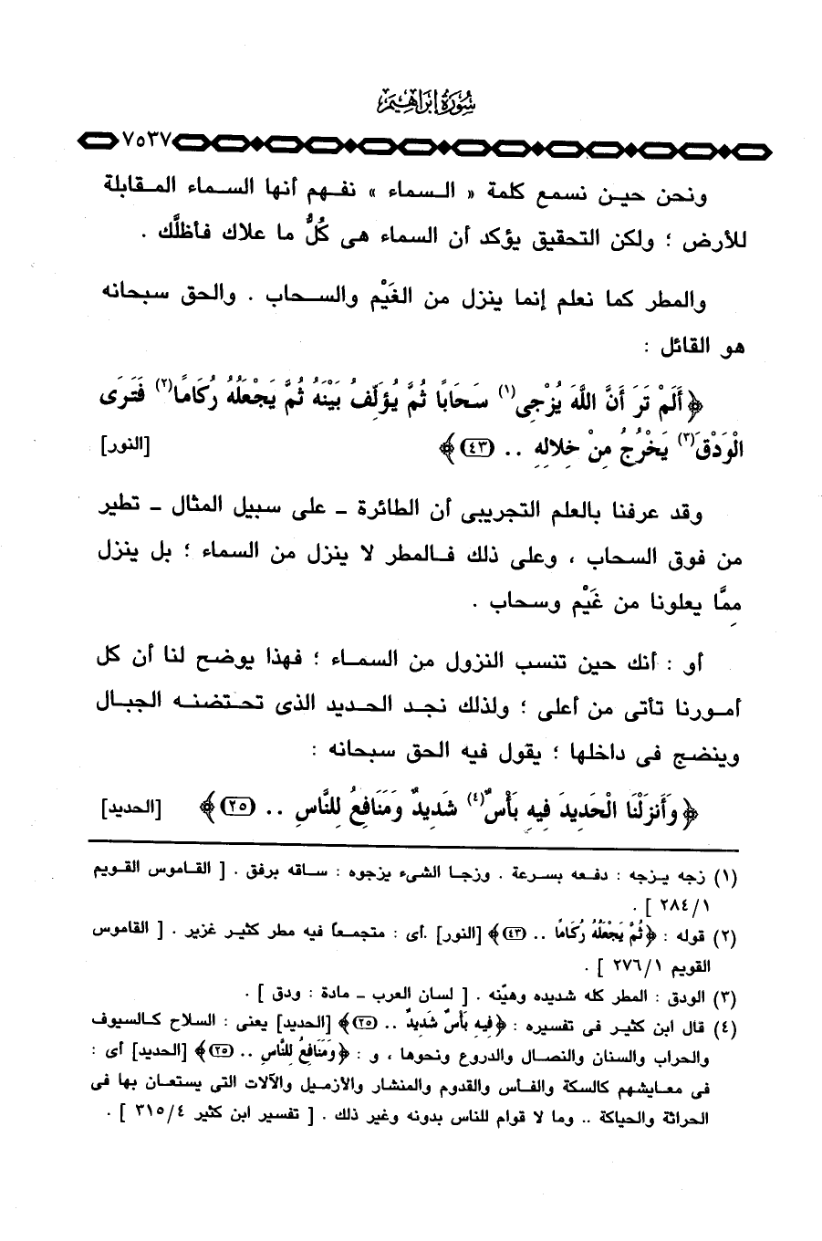وقد عرفنا بالعلم التجريبي أن الطائرة - على سبيل المثال - تطير من فوق السحاب، وعلى ذلك فالمطر لا ينزل من السماء؛ بل ينزل ممَّا يعلونا من غَيْم وسحاب.
