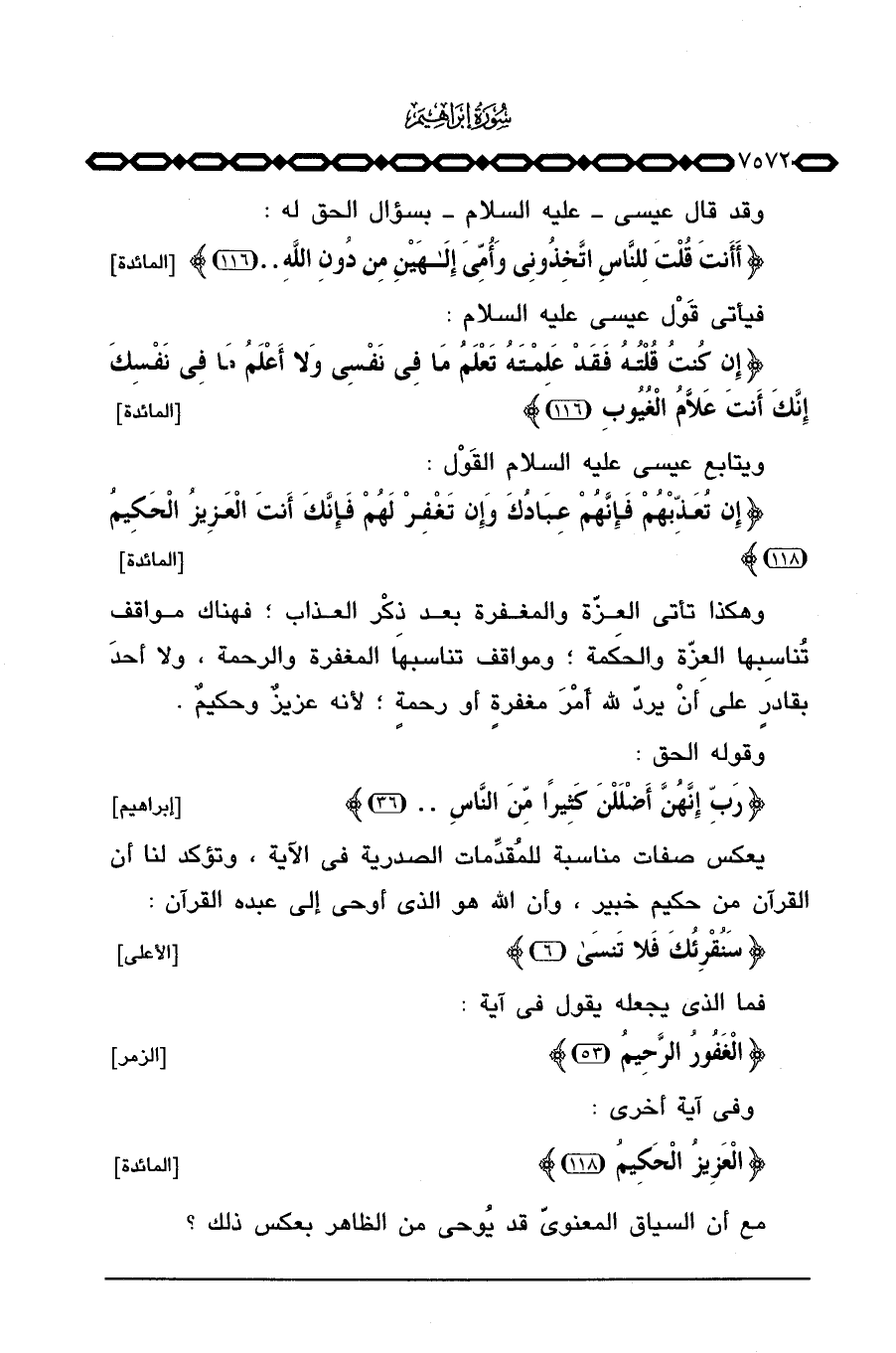 وهكذا تأتي العزّة والمغفرة بعد ذِكْر العذاب؛ فهناك مواقف تُناسِبها العِزّة والحكمة؛ ومواقف تناسبها المغفرة والرحمة، ولا أحدَ بقادرٍ على أنْ يردّ لله أَمْرَ مغفرةٍ أو رحمةٍ؛ لأنه عزيزٌ وحكيمٌ.