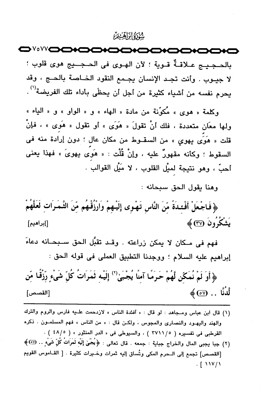 {فاجعل أَفْئِدَةً مِّنَ الناس تهوي إِلَيْهِمْ وارزقهم مِّنَ الثمرات لَعَلَّهُمْ يَشْكُرُونَ} [إبراهيم: 37] .