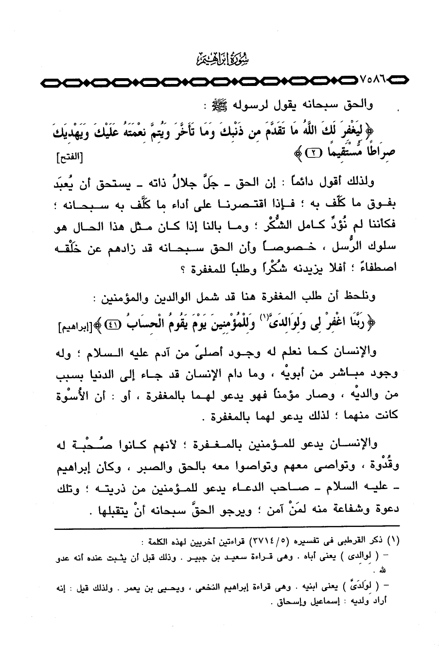 {رَبَّنَا اغفر لِي وَلِوَالِدَيَّ وَلِلْمُؤْمِنِينَ يَوْمَ يَقُومُ الحساب} [إبراهيم: 41] .