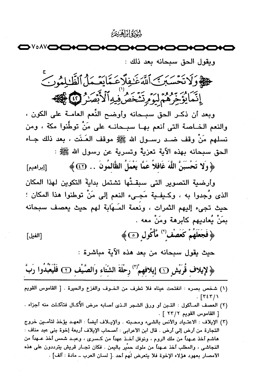 {وَلاَ تَحْسَبَنَّ الله غَافِلاً عَمَّا يَعْمَلُ الظالمون. .} [إبراهيم: 42] .