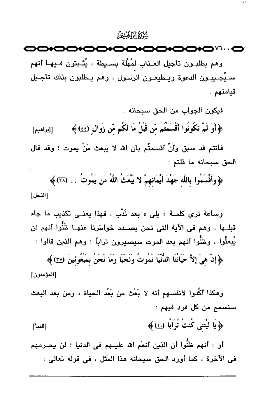 {أَوَلَمْ تكونوا أَقْسَمْتُمْ مِّن قَبْلُ مَا لَكُمْ مِّن زَوَالٍ} [إبراهيم: 44] .