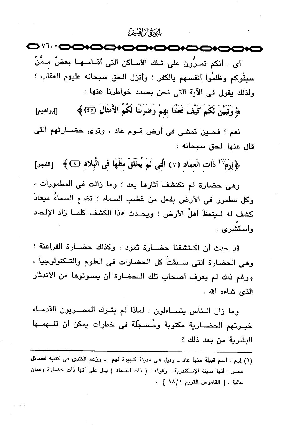 قد حدث أن اكتشفنا حضارة ثمود، وكذلك حضارة الفراعنة؛ وهي الحضارة التي سبقتْ كل الحضارات في العلوم والتكنولوجيا، ورغم ذلك لم يعرف أصحاب تلك الحضارة أن يصونوها من الاندثار الذي شاءه الله.