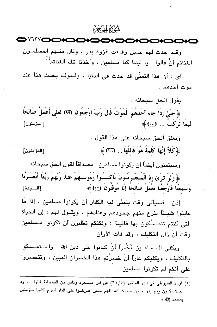 ويكفي المسلمين فَخْراً أن كانوا على دين الله، واستمسكوا بالتكليف، ويكفيكم عاراً أنْ خَسِرْتم هذا الخسران المبين، وتتحسروا على أنكم لم تكونوا مسلمين.