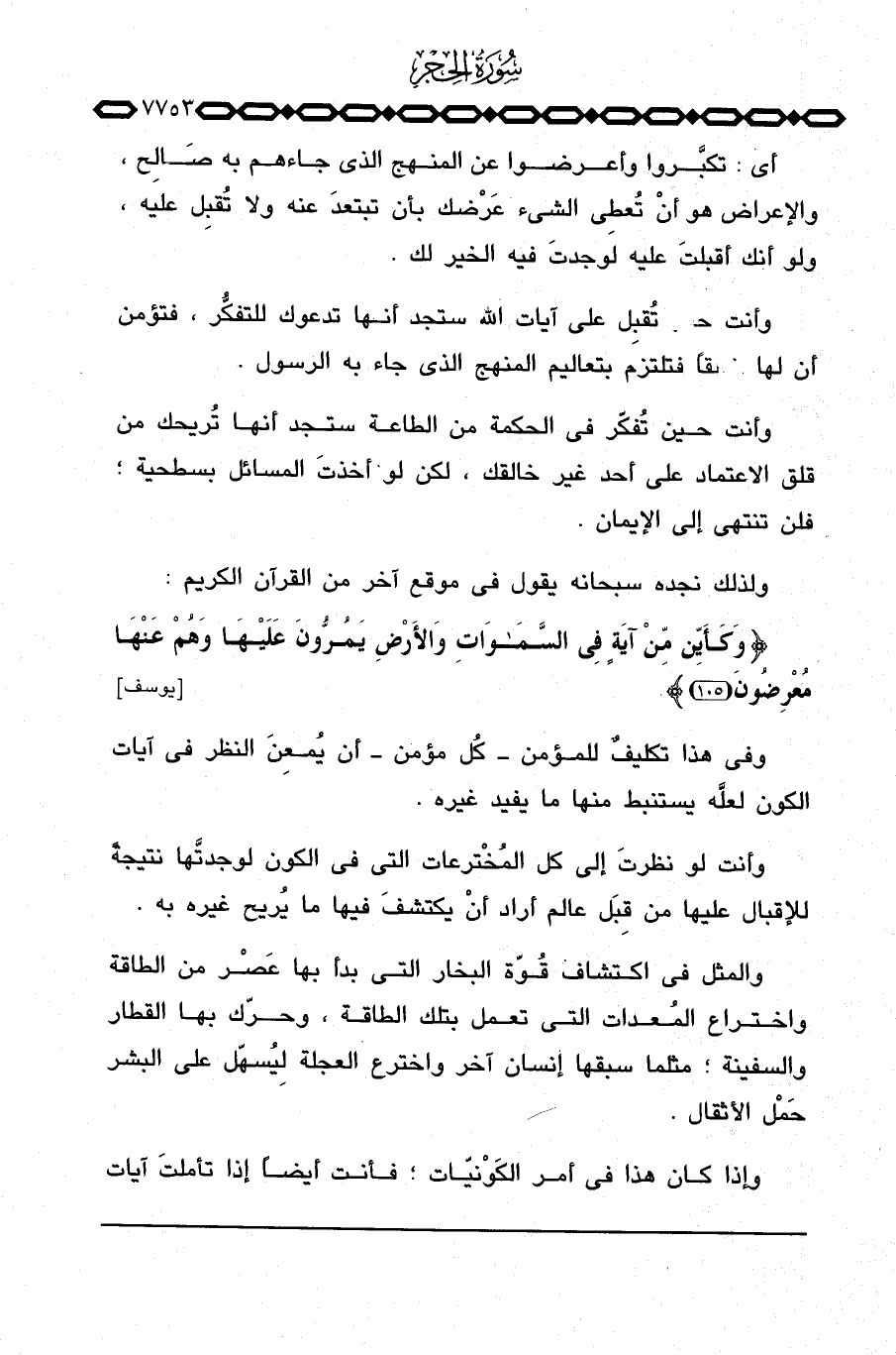 ولذلك نجده سبحانه يقول في موقع آخر من القرآن الكريم: {وَكَأَيِّن مِّن آيَةٍ فِي السماوات والأرض يَمُرُّونَ عَلَيْهَا وَهُمْ عَنْهَا مُعْرِضُونَ} [يوسف: 105] .