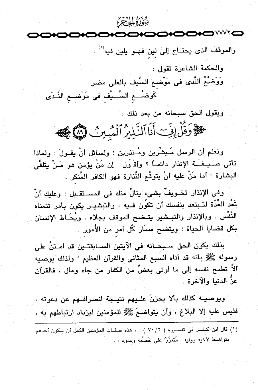 وَوَضْعُ النَّدى في مَوضْعِ السَّيف بالعلي مضر ... كَوَضْعِ السَّيْفِ فِي مَوْضعِ النَّدَى