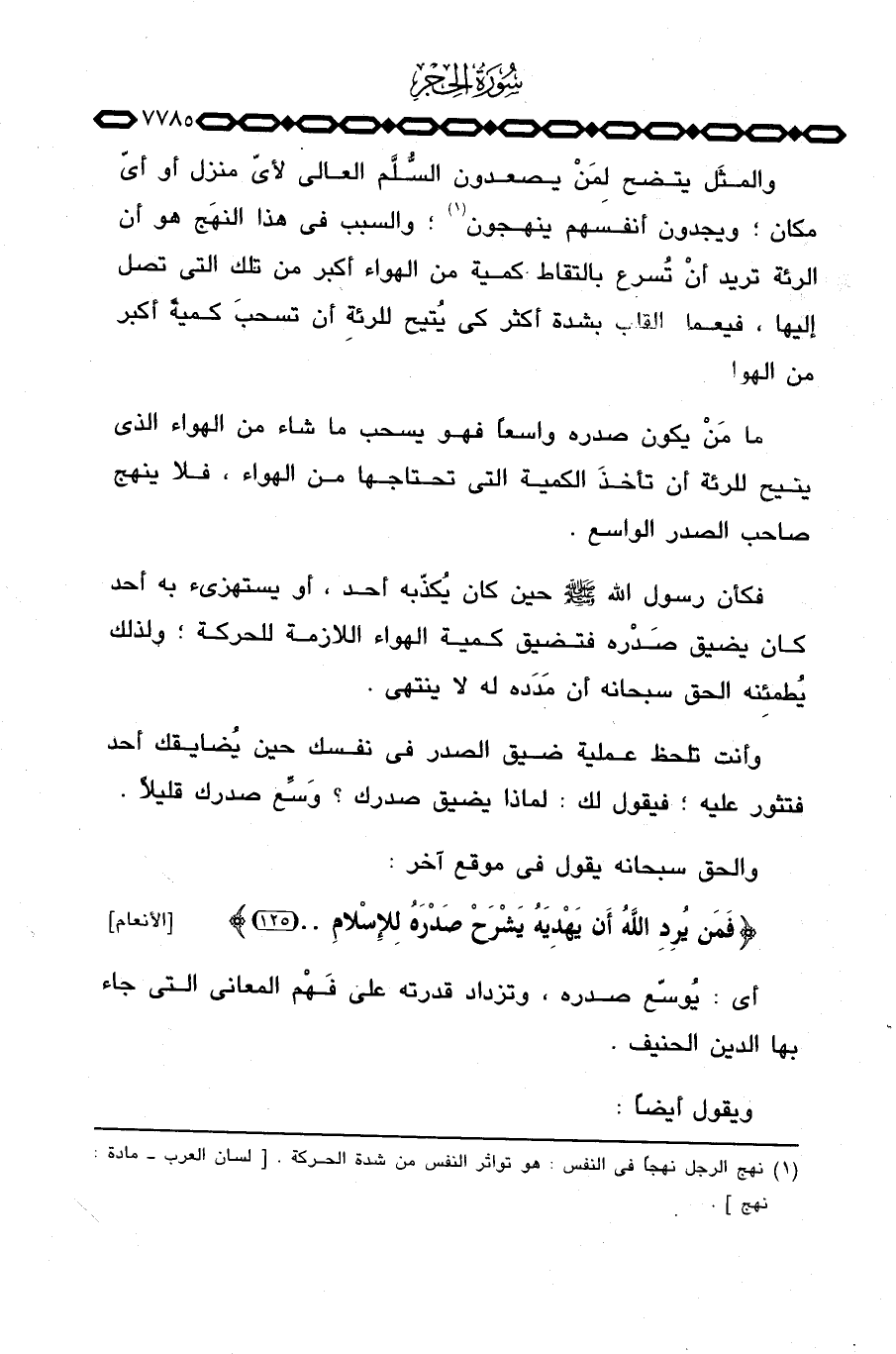 أما مَنْ يكون صدره واسعاً فهو يسحب ما شاء من الهواء الذي يتيح للرئة أن تأخذَ الكمية التي تحتاجها من الهواء، فلا ينهج صاحب الصدر الواسع.