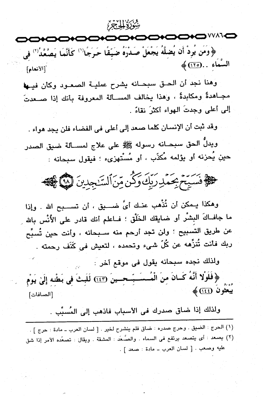{وَمَن يُرِدْ أَن يُضِلَّهُ يَجْعَلْ صَدْرَهُ ضَيِّقاً حَرَجاً كَأَنَّمَا يَصَّعَّدُ فِي السمآء} [الأنعام: 125] .