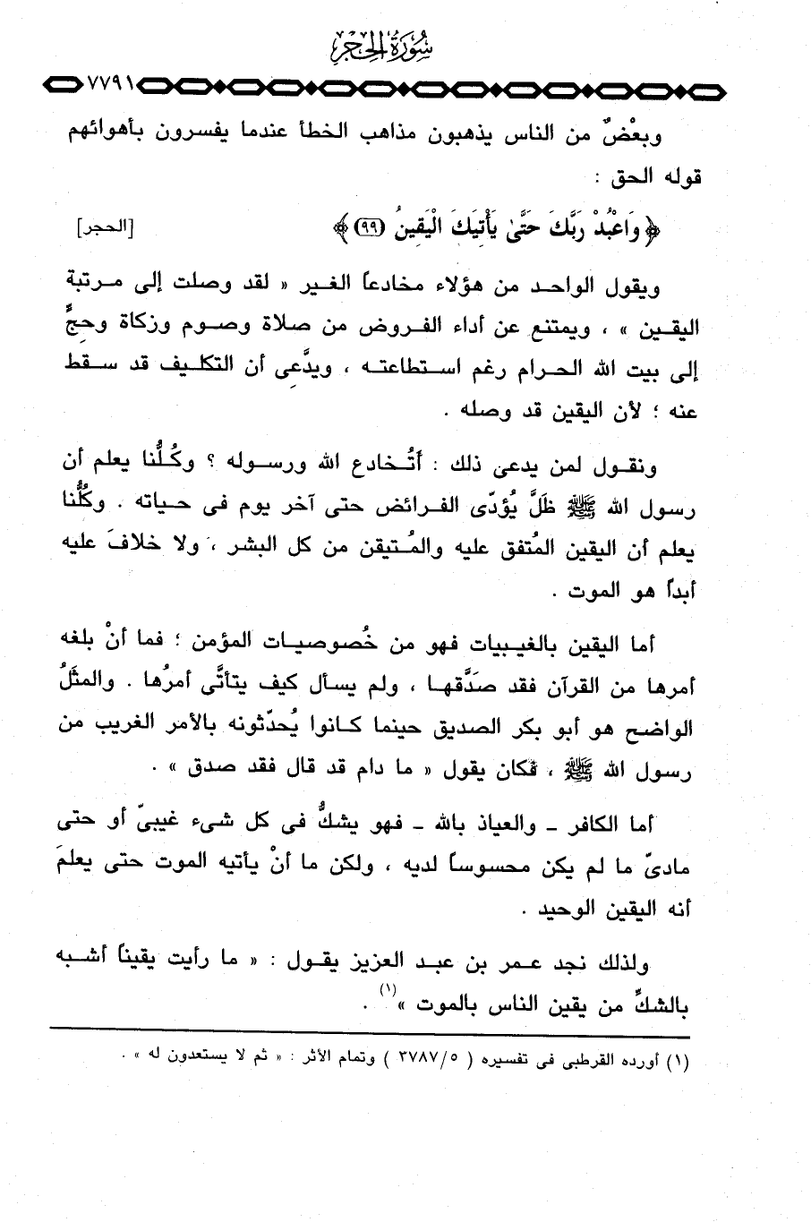 ونقول لمن يدَّعي ذلك: أَتُخادع الله ورسوله؟ وكُلُّنا يعلم أن رسول الله صَلَّى اللَّهُ عَلَيْهِ وَسَلَّم َ ظَلَّ يُؤدِّي الفرائض حتى آخر يوم في حياته. وكُلُّنا يعلم أن اليقين المُتفق عليه والمُتيقن من كل البشر، ولا خلافَ عليه أبداً هو الموت.