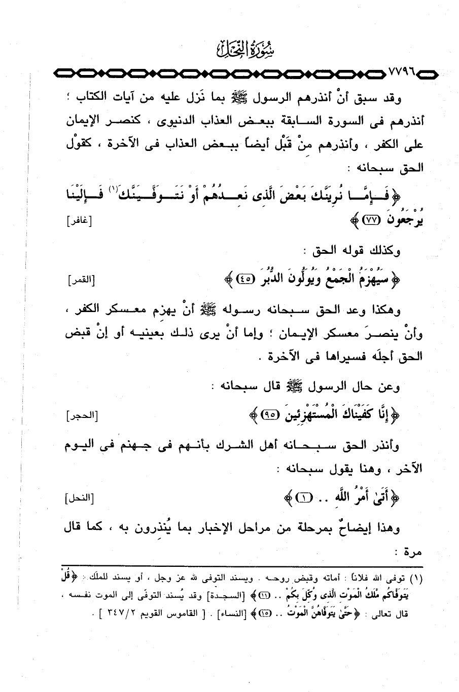 وقد سبق أنْ أنذرهم الرسول صَلَّى اللَّهُ عَلَيْهِ وَسَلَّم َ بما نَزل عليه من آيات الكتاب؛ أنذرهم في السورة السابقة ببعض العذاب الدنيوي، كنصر الإيمان على الكفر، وأنذرهم مِنْ قَبْل أيضاً ببعض العذاب في الآخرة، كقوْل الحق سبحانه: {فَإِمَّا نُرِيَنَّكَ بَعْضَ الذي نَعِدُهُمْ أَوْ نَتَوَفَّيَنَّكَ فَإِلَيْنَا يُرْجَعُونَ} [غافر: 77] .